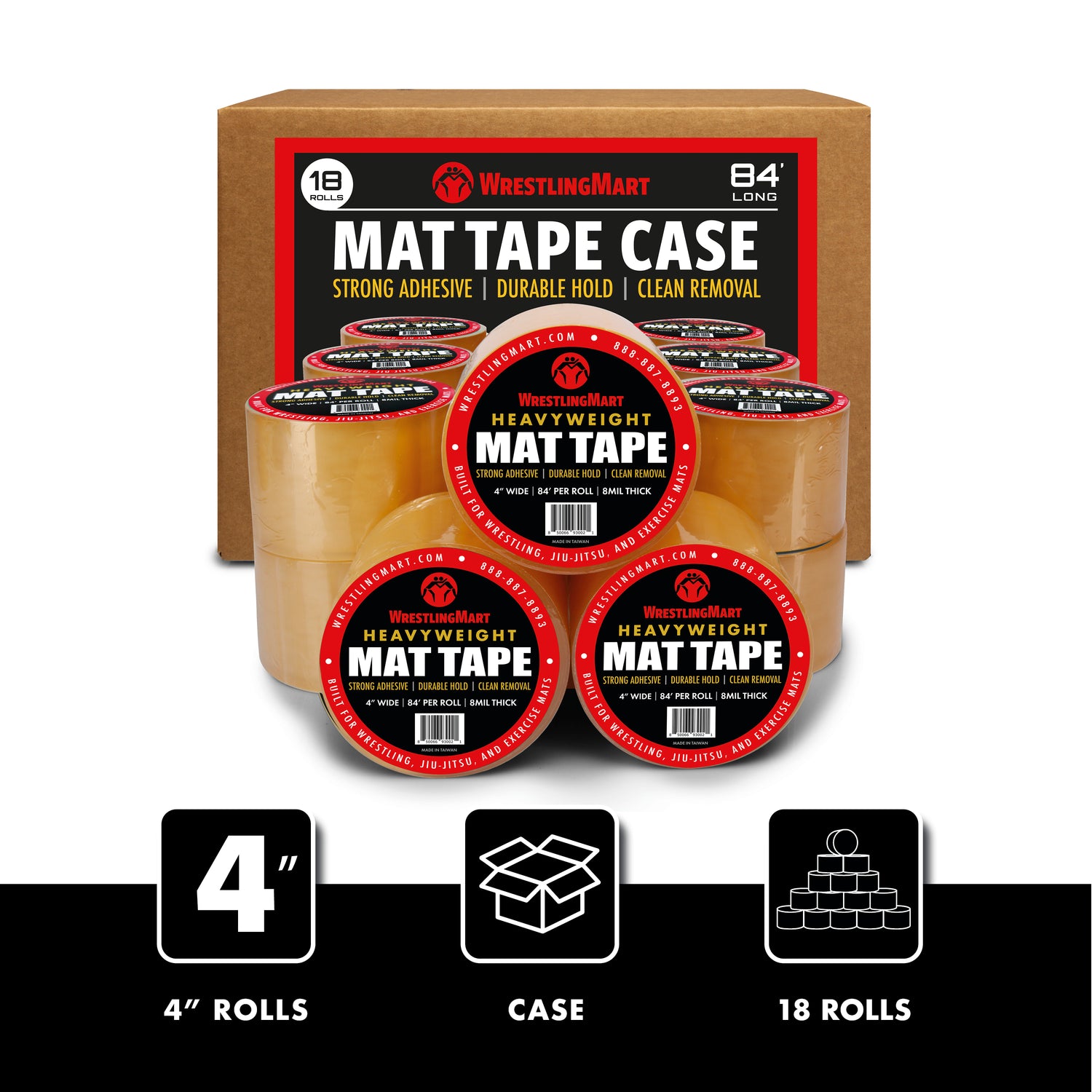 WrestlingMart 4 Inch Mat Tape (1 Case/18 Rolls)